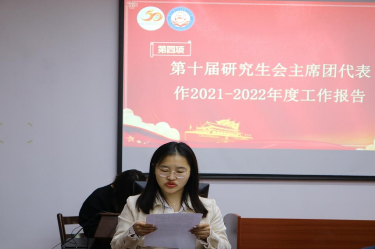 会议第三项,第十届研究生会主席团代表朱亚美作第十届研究生会工作报告。