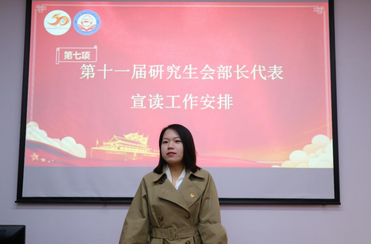 会议第五项,第十一届研究生会主席团成员提名新一届研究生会部门负责人,并由负责人代表作下阶段工作安排。