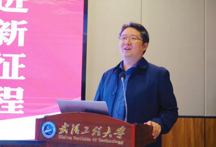 随后,王涛书记以C919大飞机为例说明众多大国重器都离不开新型材料。他还结合武汉工程大学在材料领域的科研成果介绍了全生物降解高分子材料、高性能碳化硅陶瓷膜材料、半导体芯片材料、自清洁纳米材料和等离子体技术制备金刚石等新型材料。