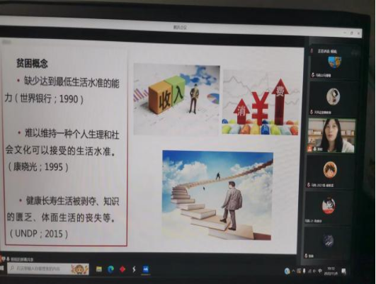 杨铭博士首先给同学们播放了视频《非凡中国非凡十年》,引发了同学们对中国特色社会主义进入新时代的这十年所发生变化的深入思考。十年路风雨兼程,九万里风鹏正举,新时代的伟大变革在党史、新中国史、改革开放史、社会主义发展史、中华民族发展史上具有深远意义。杨铭博士从贫困的概念、贫困的衡量标准等方面为同学们详细解读了“什么是贫困”,又通过播放视频向同学们展示了中国打赢脱贫攻坚战、全面建成小康社会所取得的伟大成就。