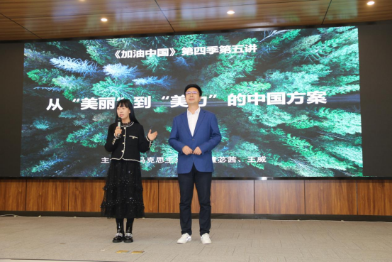 (通讯员:张悦 曹松)11月16日晚,大型思政选修课《加油中国》第四季第五讲在计算机学院图灵报告厅举行,理论电费理论董苾茜博士和王威博士共同主讲了主题为“从‘美丽’到‘美力’的中国方案”的精彩课程,为选修本课程的本科生和旁听的师生带来了一场别开生面、充满激情的思政示范课。