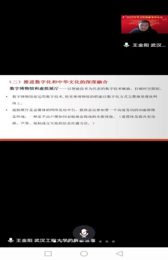 上午,彭颜红博士在会议上作了题为《元宇宙时代中华文化国际传播的提升艺术》的报告,受到与会师生的高度好评。同时,彭颜红博士指导的三位硕士研究生向此次论坛提交了论文。王金阳同学提交了题为《智能媒体时代中华文化国际传播的路径研究》的论文,陈明同学提交了题为《论传媒化技术对中华文化传播的影响》的论文,蹇梦婷同学提交了题为《浅析新时代中华文化国际传播影响力提升路径》的论文。经过层层选拔,三位同学的论文都入选了本次国际会议。并且,王金阳和蹇梦婷两位同学的论文获准在会议上发言。