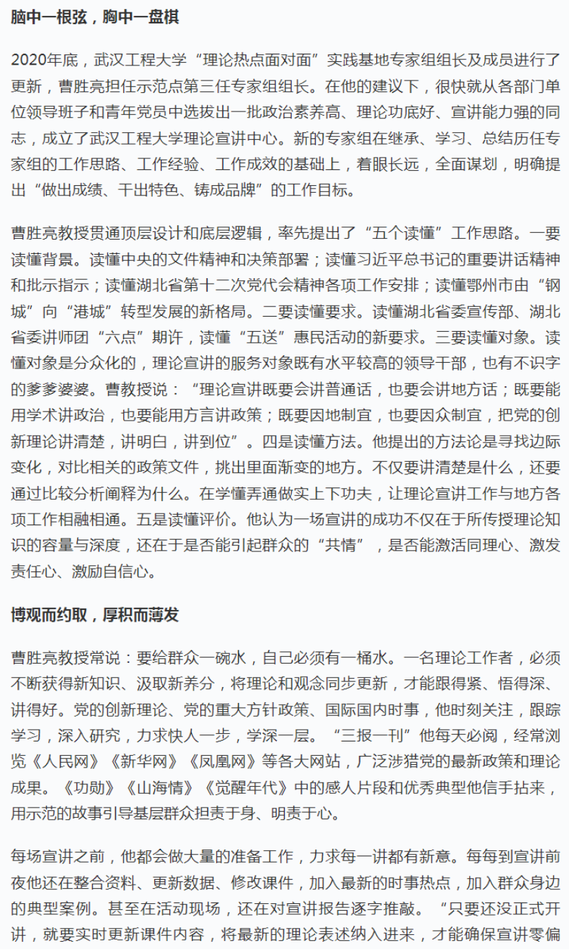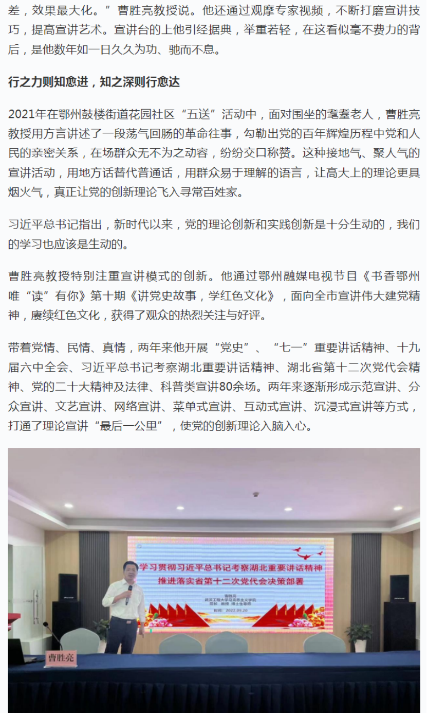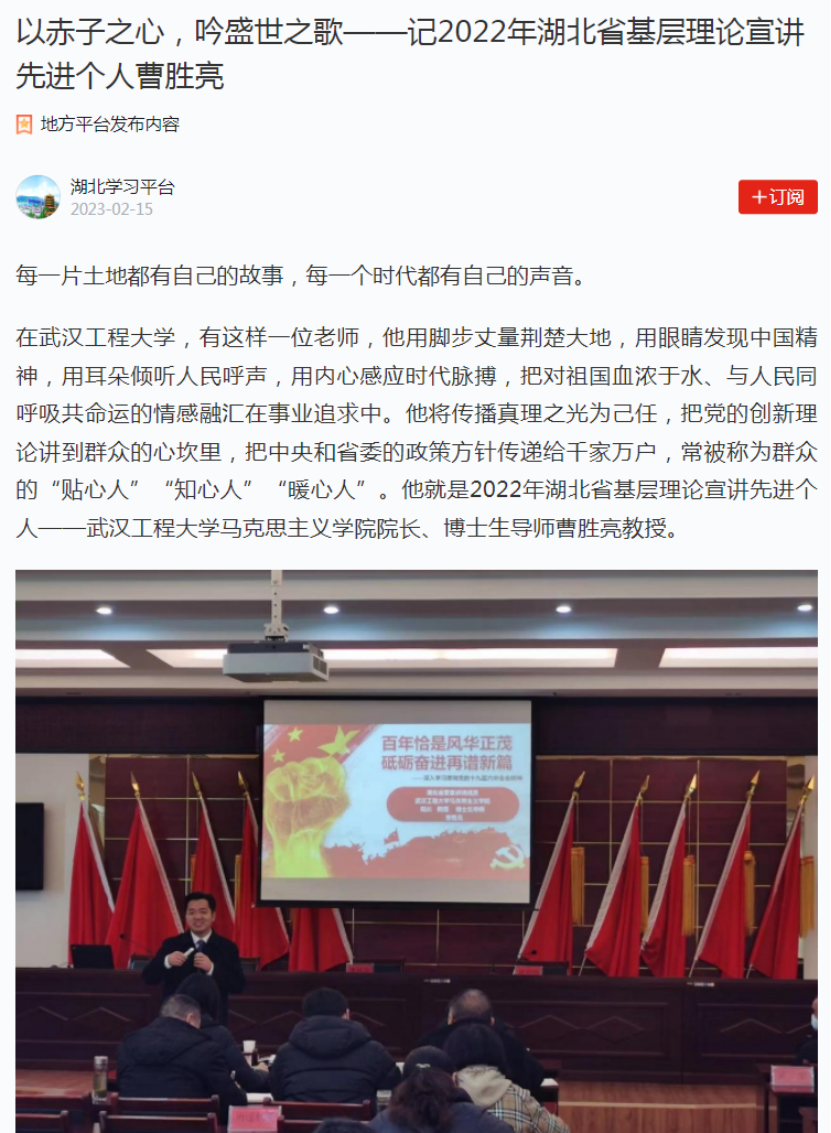 2月15日,我院院长曹胜亮教授登上“学习强国”平台《宣讲风采》栏目,发挥了先进典型的示范引领和正向激励作用,引起了大众和媒体的广泛关注。