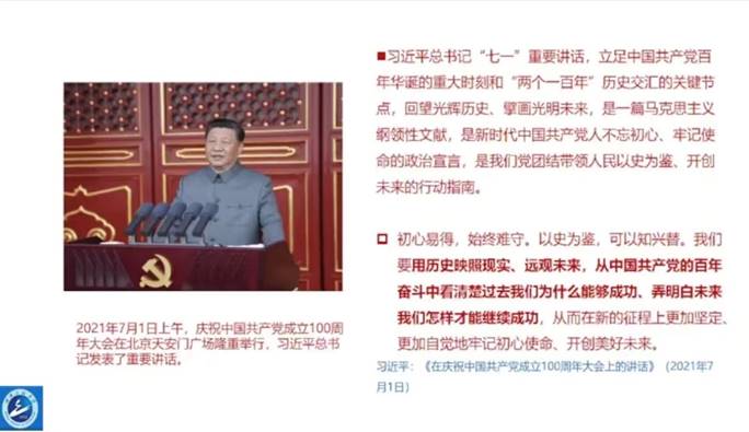 周智年教授的讲授内容分为五个部分:第一部分,总结历史经验,掌握历史主动,走好必由之路。周智年教授首先带领大家学习了习近平总书记“七一”重要讲话精神,“七一”重要讲话是《习近平谈治国理政》(第四卷)中的重要内容,讲话从大历史观出发,站在历史全局的高度确立了党的历史主题,并指出这是一篇马克思主义纲领性文件。接着,周教授回顾党的百年历史,系统总结了“九个必须”的宝贵经验,阐发“九个必须”既是以史为鉴的政治智慧,又是开创未来的根本要求。随后,周教授带领大家回顾中国共产党第十九届中央委员会第六次全体会议精神,认为这次全会审议通过了一份特别的“百年总结”——《中共中央关于党的百年奋斗重大成就和历史经验的决议》,这是我们党的历史上的第三个历史决议,为我们准确把握党的历史发展的主题主线、主流本质,正确认识和科学评价党史上的重大事件、重要会议、重要人物提供了重要依据。