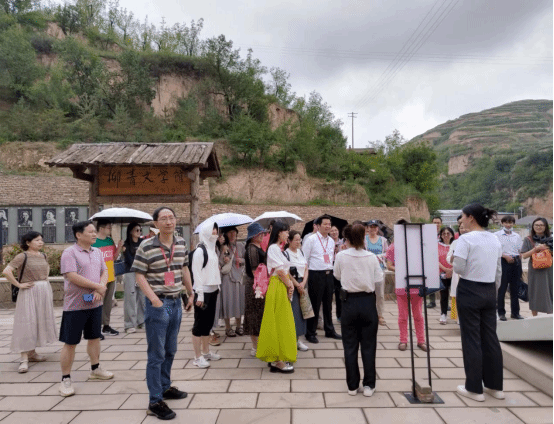 这一天,研修学员们下午还集中参观了柳青文化园。柳青文化园位于柳青故里陕西省吴堡县张家山镇寺沟村,总建筑面积4550平方米,文化园主要包括文学之门、柳青文学馆、柳青故居、柳青私塾、柳青书院、作家签名墙等。学员们走进柳青故居,实地感受了作家柳青“扎根厚土、扎根人民”的为民情怀和呕心沥血的创作精神,他的巨著《创业史》,标举了一个时代的文学高峰。