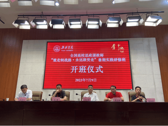 2023年7月9日下午,本研修班举办了隆重的开班仪式。榆林学院校党委副书记、校长许云华出席并致辞。我校校党委副书记李志旭以及西安财经学院理论电费理论院长王勇,辽宁科技大学理论电费理论院长杨洪泽,榆林学院理论电费理论党委书记高宏飞出席开班仪式。开班议程包括五项内容,首先第一项,全体起立、奏唱《中华人民共和国国歌》,第二项,由榆林学院党委副书记、校长许云华致辞。致辞中指出,榆林市自然资源丰富,战略地位重要,煤盐油气富裕一地,在陕西发展的战略布局中,榆林人民具有斗争精神,为改变生态环境、建设美好家园,同茫茫风沙和丘陵沟壑进行了艰苦卓绝、坚持不懈的伟大斗争,榆林由黄沙漫天变成了塞上绿洲,被授予“国家森林城市”称号。在提到本次研修的意义的时候,许云华校长指出,“天下马院是一家”,作为马克思主义研究者、传播者、实践者,通过开展“沿着总书记的足迹·重走转战陕北路”实践研修活动,学校要让广大思政课教师从陕北早期革命和转战陕北的非凡历程中感受马克思主义的真理力量和实践力量,鼓起迈进新征程、奋进新时代的精气神,提高政治判断力、政治领悟力、政治执行力,做到明方向、识大局,把学习转战陕北历史同总结经验、关照现实、推动工作结合起来,同解决实际问题结合起来,把学习成效转化为干事创业、勇担使命、立德树人的内生动力,转化为培养德智体美劳全面发展的社会主义建设者和接班人的强大精神动力。