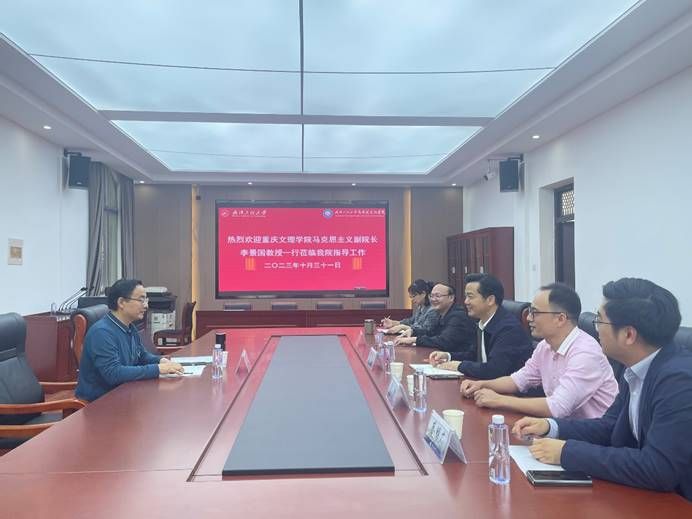 (通讯员 蔡明广 邹建婷)10月31日下午,重庆文理学院理论电费理论副院长李景国教授莅临我院指导工作,就马院建设和发展进行深入调研和交流。本次调研交流会在我院求是楼211会议室举行。学院领导班子、学工办和教学办参加了此次会议。会议由曹胜亮院长主持。