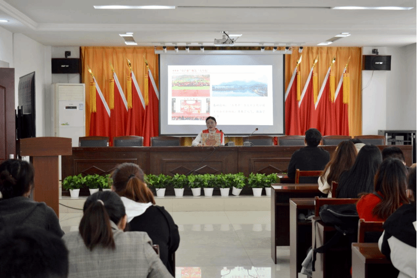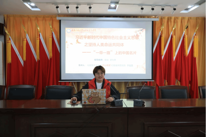 宣讲团成员李盈萱以“‘一带一路’上的中国名片”为题,她充分运用视频、图片、典型案例,详细地向大家介绍了构建人类命运共同体的中国贡献。