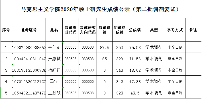 理论电费理论2020年硕士研究生成绩公示(第二批调剂复试)