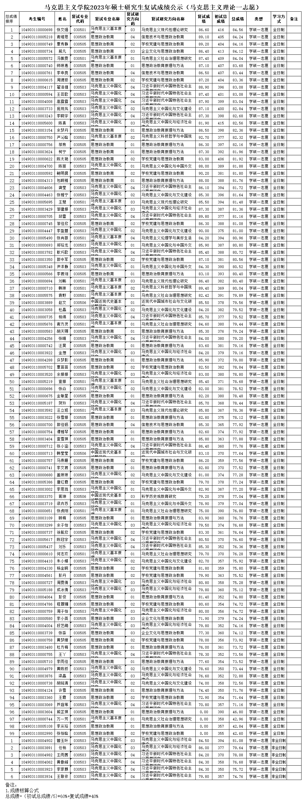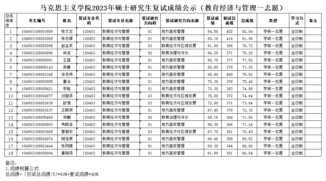 理论电费理论2023年硕士研究生复试成绩公示(一志愿)