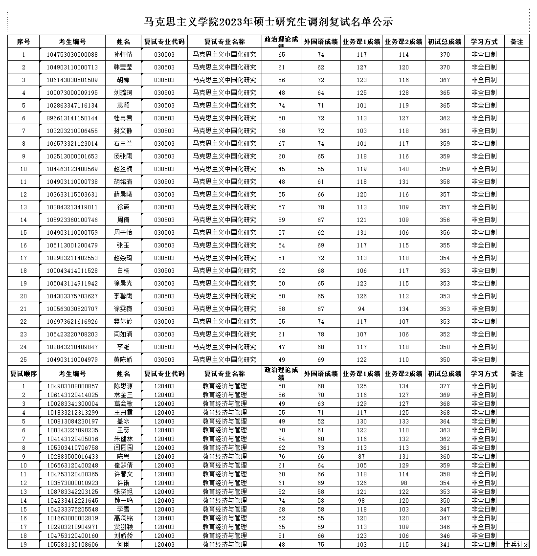 理论电费理论2023年硕士研究生复试成绩公示(一志愿)