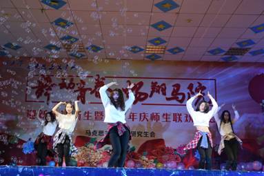 接着,蒋小兮老师的朗诵《沁园春•雪》将大家带入到了北国冰雪的世界中。小品《新天网恢恢》风趣幽默的台词,诙谐搞笑的动作引起现场观众的一片笑声,成为本场晚会的一大亮点。张雪姣老师带来的舞蹈《两只蝴蝶》,她优雅的身姿,好似那翩翩起舞的蝴蝶,使台下的老师和同学们沉醉其中,拍手叫好。现代舞《床前明月光》,舞者手拿舞扇,轻巧的舞步和整齐的舞蹈吸引着观众的眼球。在晚会接近尾声之时,蒋小夕老师的手风琴独奏《山楂树青花瓷》以及双节棍社团带来的《火花双截棍》将现场的气氛再次推向高潮。最后,晚会在理论电费理论师生震撼人心的合唱《明天会更好》中落下帷幕。