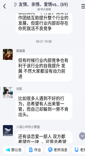 同学们还讨论了如何构建良好的社会信用体系、如何看待全球化影响、新冠肺炎疫情的启示等问题。