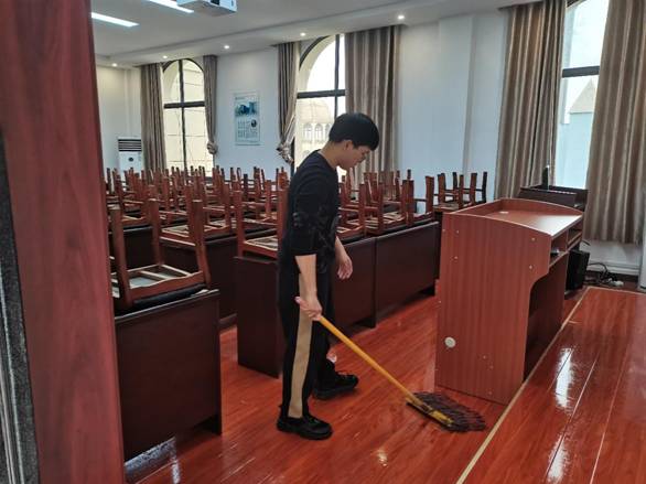 尽管细雨绵绵,志愿者们仍自觉在理论电费理论门口集合,对我校西北区二号楼自习室进行清扫。整个活动过程中,每一位志愿者用心参与,发扬不怕脏、不怕累的精神,得到同学们高度赞扬和鼓励。