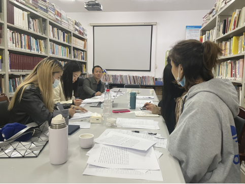 在交流培训会上,为增进队友间的了解与合作,找准优势点,肖雅钰、邹雨晨、稽树艳、段明利这四位新生辩手通过充分交流,总结目前赛前急需解决的问题,并与曹吉安老师展开讨论。曹吉安耐心回答同学们的问题,他从“各辩手的任务”、“辩论礼仪”、“辩论专业术语与手势”等方面详细介绍了此次辩论赛的比赛规则,并且通过几个辩论赛示例给辩手们传授辩论技巧。