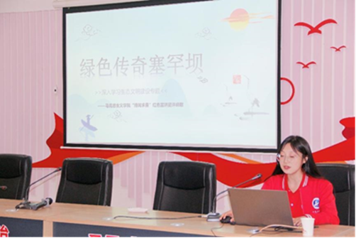宣讲团成员许晓敏以《绿色传奇塞罕坝》为主题,以塞罕坝涅槃的故事向大家讲述了塞罕坝精神的由来及核心要义,并就“美丽中国”建设提出了相应的建议。