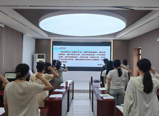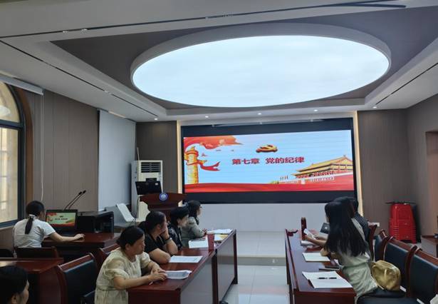 首先,兰洁同志带领全体党员重温入党誓词,查婷同志领学《新党章》第七章“党的纪律”,重点解读了第三十九条关于党的纪律重要地位的论述,以及第四十条对党的纪律主要内容的阐释,帮助党员们深刻认识党的纪律的严肃性与权威性。