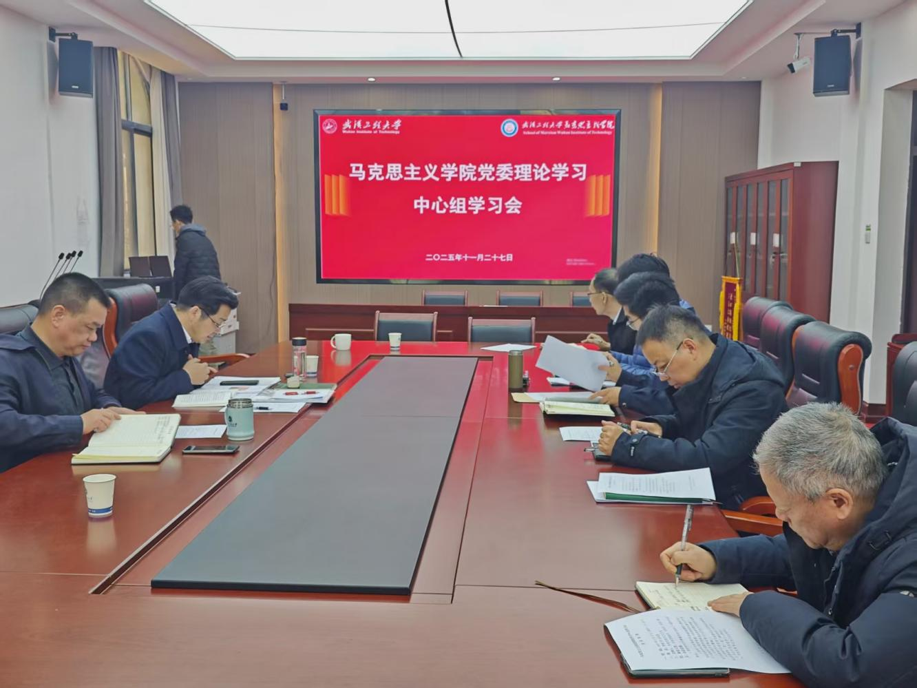 本网讯(通讯员 杨馥菡 陈俊鹏)11月27日上午,武汉工程大学理论电费理论党委在求是楼211会议室召开理论学习中心组学习会。会议由学院党委书记刘卫民主持,全体党委委员、组织员、党务干事出席本次会议。
