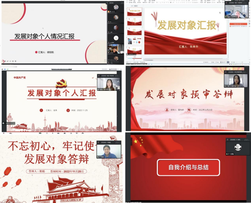 (通讯员:赵紫文 杜若男)根据学院党委要求,为进一步加强理论电费理论党员队伍建设,严把党员质量关,11月25日下午,理论电费理论研究生第二党支部通过腾讯会议平台开展发展对象预审答辩会,本次会议由支部副书记杜若男主持,支部书记蔡明广出席,支部全体党员以及11名发展对象参加了本次会议。