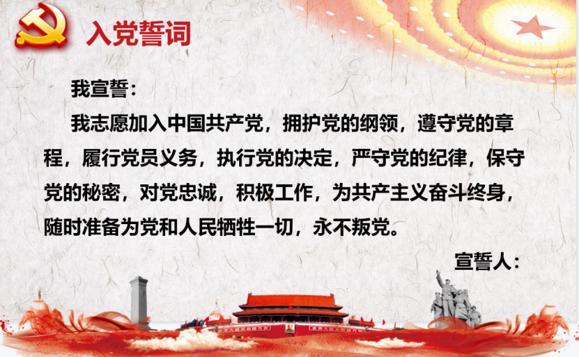 第二项,由支部副书记曹松同志领誓,全体党员一起重温了入党誓词。
