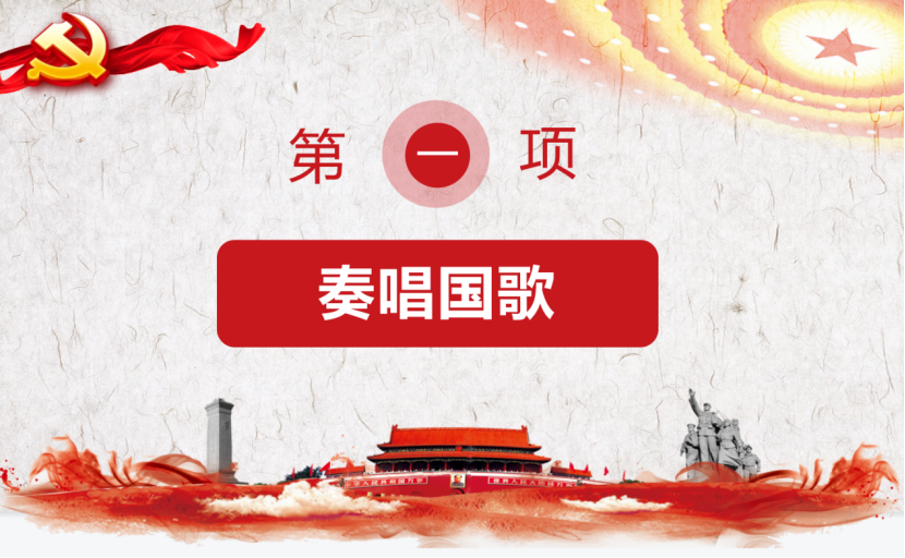 会议分两个阶段进行。第一阶段按照六大规定动作开展十一月份支部主题党日活动。第一项,全体起立,齐声奏唱国歌;
