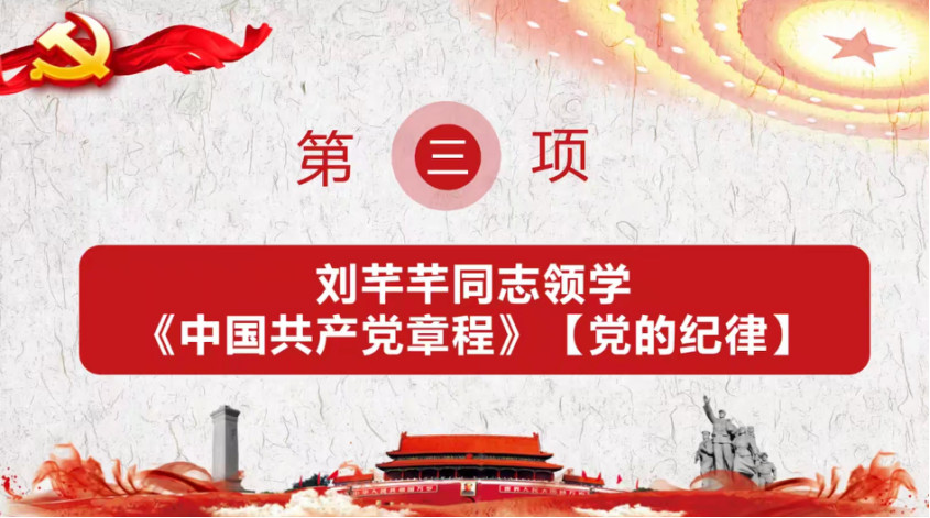 会议第三项,由刘芊芊同志领学《中国共产党章程》中“党的纪律”。