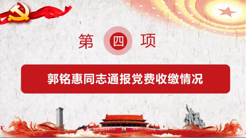 会议第四项,纪检委员郭铭惠同志通报党费收缴情况。