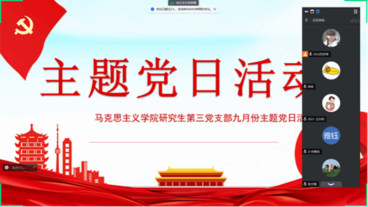 (通讯员:田苏琦)2023年9月26日晚,理论电费理论研究生第三党支部通过腾讯会议开展了九月份的主题党日活动。会议由党支部副书记田苏琦主持,研究生第三党支部全体学生党员参加。