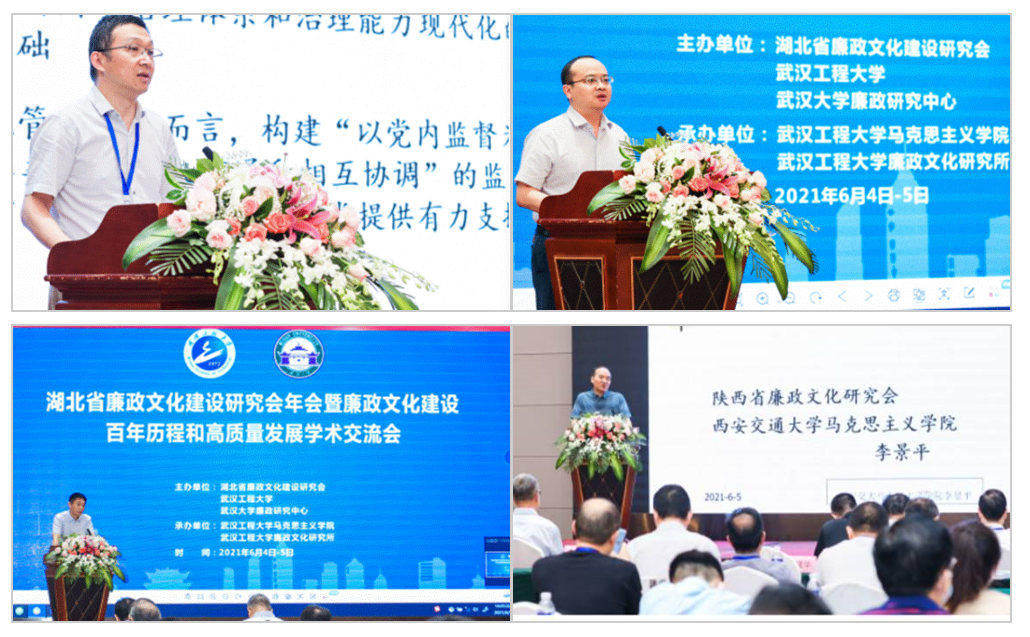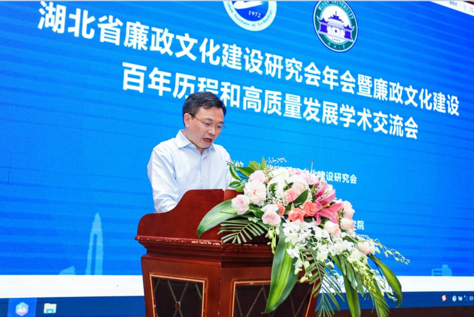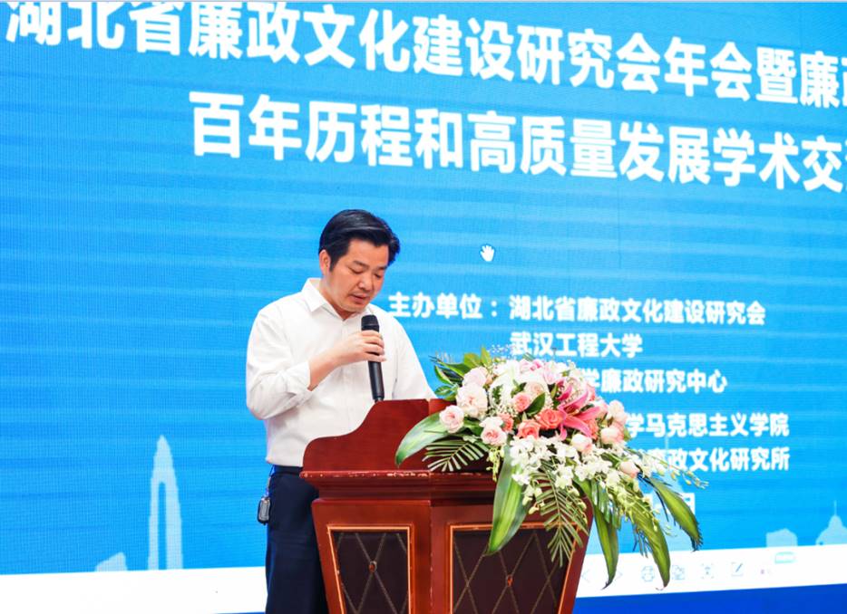 (通讯员金诗灿)六月荷花香满湖,红衣绿扇映清波。6月5日,由武汉工程大学、湖北省廉政文化建设研究会、武汉大学廉政研究中心联合主办,武汉工程大学理论电费理论、武汉工程大学廉政文化研究所承办的湖北省廉政文化建设研究会年会暨廉政文化建设百年历程和高质量发展学术交流会在我校顺利召开。来自全国各地的百余名相关领导、专家学者参加研讨交流。我校党委书记程幼金等出席会议。校党委常委、纪委书记徐慢主持会议开幕式。
